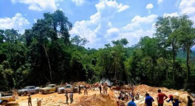 aproximadamente 18 km da cidade, a região de garimpo ilegal funciona desde